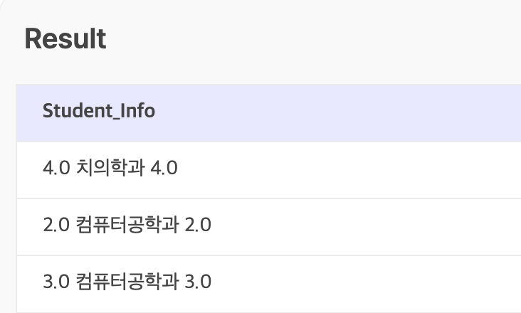https://sqlschool.co.kr/ SQooL 웹페이지에서 실행 가능한 교육 목적의 SQL 튜토리얼 사이트입니다. 별도의 설치 없이 기본 SQL 구문을 실습해 볼 수 있습니다. sqlschool.co.kr 여기서 실습했음. SELECT 데이터를 조회하거나 산술식, 함수 등을 실행할 때 사용. SELECT * FROM student; student의 모든 정보를 출력 SELECT 학번, 이름, 학과 FROM student; student의 학번, 이름, 학과를 출력 SELECT 1+1; SELECT (10 + 2) / 2; DISTINCT 중복값을 제거. SELECT DISTINCT 학과번호 FROM subject; subject의 학과번호에서 중복제거하고 출력 ORDER BY 결과를 정렬. 오름..